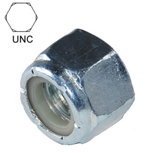UNC Nyloc Nut. Grade 5 High Tensile Zinc Plated. Purchase each or in pack quantities.