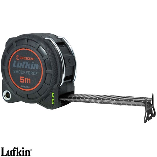 The Shockforce Nite Eye™ 8' Keychain Tape Measure is a compact yet powerful tool designed for convenience and reliability. Whether you're on the go or tackling a quick project, this tape measure delivers Crescent Lufkin's renowned quality right at your fingertips. Its innovative matte black blade with high-contrast green increments ensures enhanced visibility, while the 360° extra-wide end hook provides a secure grip on various shapes and surfaces. The user-friendly blade lock button makes operation effortless, and the durable full-loop keychain with a split ring allows for easy attachment to your bag or belt.