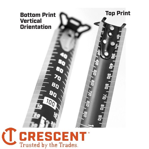 • Dual-sided blade print with vertical quick read scale on underside for overhead and hard to reach measurements