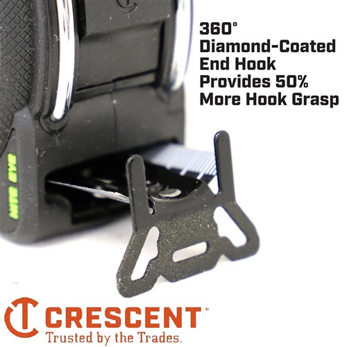 • Diamond-coated end hook grabs material from every direction and prevents slippage