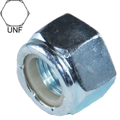 UNF Nyloc Nut. Grade 5 High Tensile Zinc Plated. Purchase each or in pack quantities.
