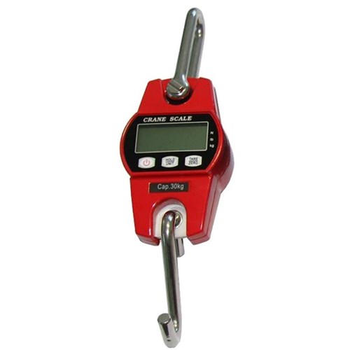 OCSL Hanging Scale, 30Kg Capacity. The OCS-L Hanging Scale is designed for both industrial and domestic use. This Low Cost Digital Hanging Scale is battery operated with a bright back light 20mm display for use in standard dark lighting. Stainless Steel hook and D Shackle included.