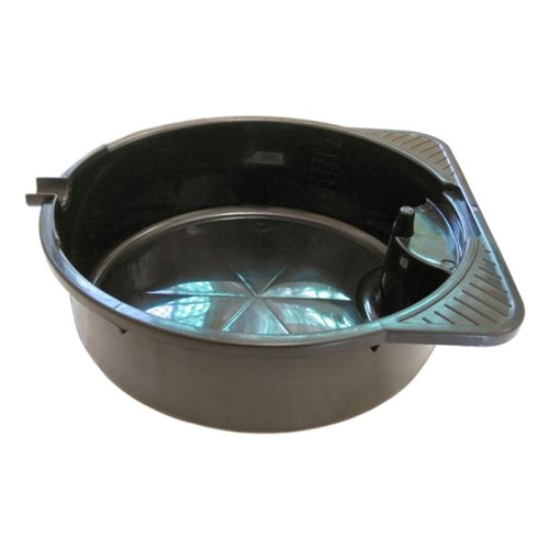 The Tool King Oil Drain Dish has a round plastic construction with an 8-litre capacity, perfect for draining oil and coolant. It is heavy duty and features an enclosed pouring spout to direct liquid to a disposal container. This dish ensures a safe and efficient oil disposal solution for mechanics or automotive DIYers.