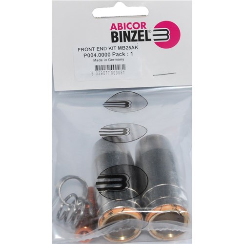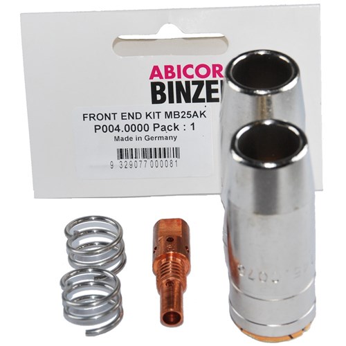 Binzel front end kit to suit MB15 Binzel torch. Contains 2 x nozzles, 1 x tip holder and 1 x gas diffuser.