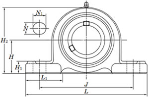Pillow-block style 2 bolt cast iron bearing housing to accept normal duty 209 series self aligning (spherical outer) ball bearings. Housing available in economy NBR brand.
