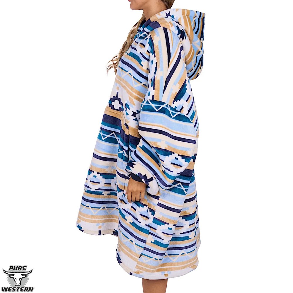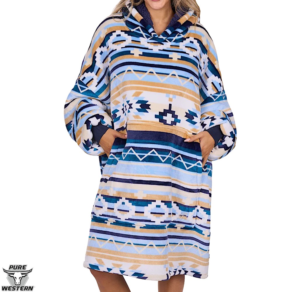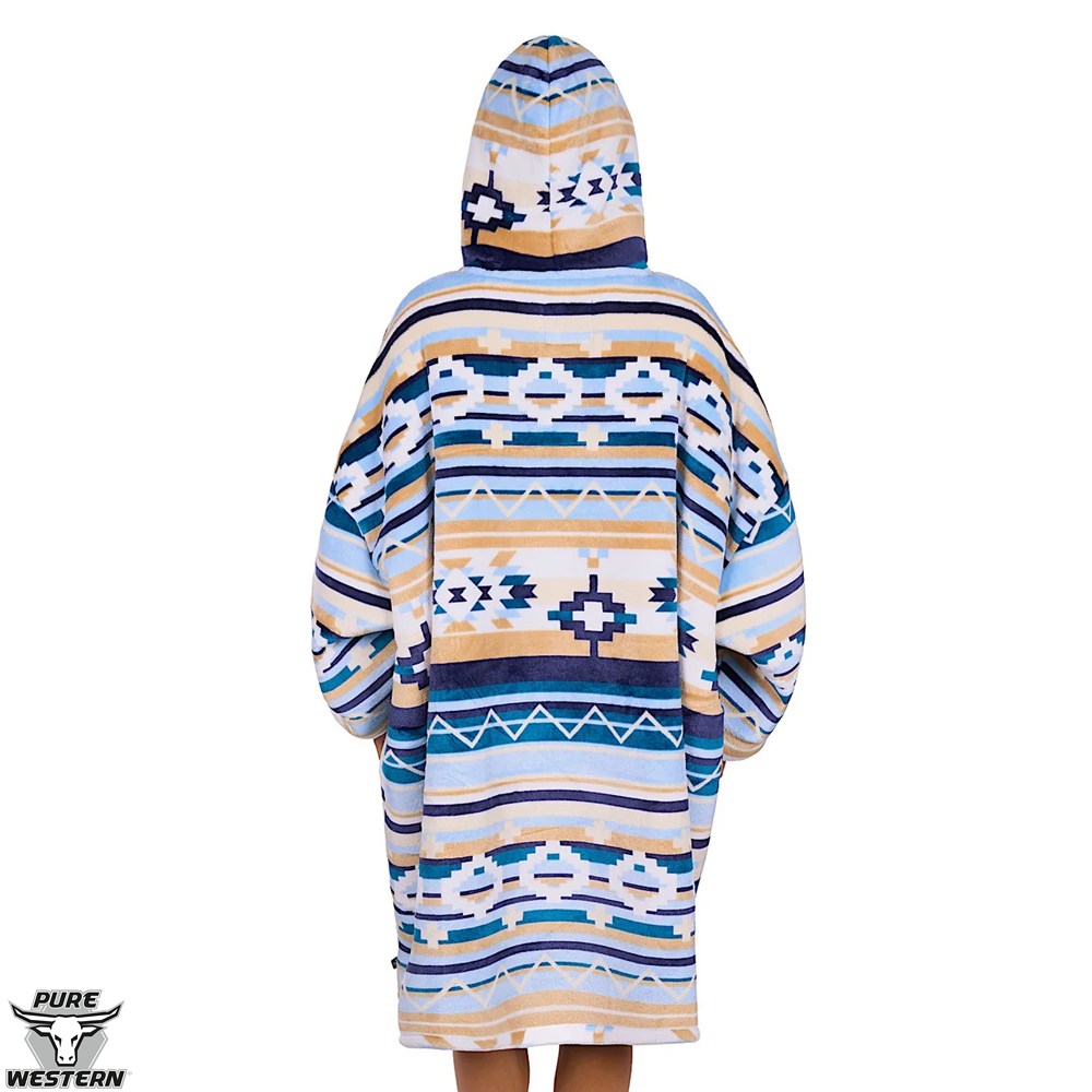 Pure Western Snuggle Hoodie – Aztec Natural/Blue (Adults OSFM)