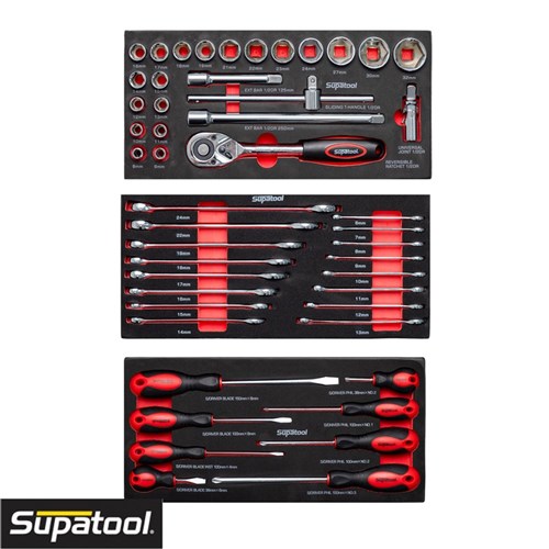The SUPATOOL EVA Tray Combo is a comprehensive 48-piece tool set designed for both professional tradespeople and serious DIY users. Housed in durable, high-density EVA foam trays, this combo provides neatly organised and easily accessible tools for a wide range of mechanical, automotive, and general repair tasks. Manufactured to Kincrome’s trusted quality standards, it offers strength, precision, and reliability across every piece.