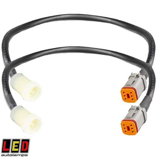 LED AUTOLAMPS patch lead twin pack cable set for conversion from your vehicles wire loom to compatible LED tail lamps LED Autolamps patch system makes it easy to install LED lights to your custom utility tray. Each cable kit includes and original equipment plug and ends in a DT06-6S connector. Simply plug one end of the kit into your vehicle tailight loom, the other into a quality LED Autolamps rear combination set.