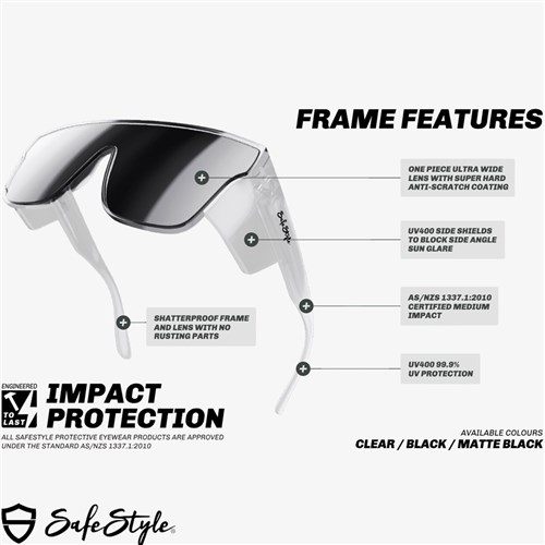 Certified to AS/NZS 1337.1 for medium impact, they include a durable anti-scratch coating. Fully recyclable and metal-free, these glasses blend style, comfort, and durability in a unisex design, ensuring you look great while staying protected.