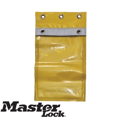 Mayo Hardware Permit Document Holder, Yellow. Made from heavy duty PVC this strong and durable document holder is ideal for storing permits and isolation documents. Includes a Velcro top to ensure that water, dirt and grime are kept out and eyelets for hanging on machinery. Apply safety padlock to lock permit inside. 35.5cm x 22.5cm.