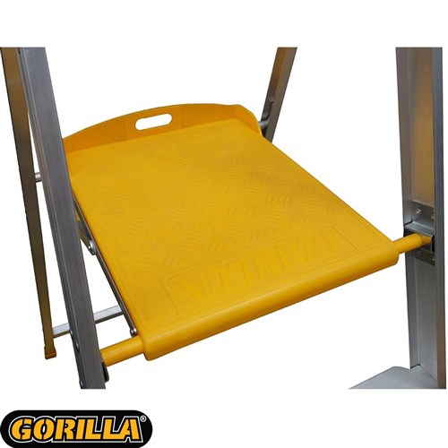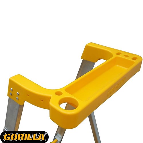 The Pro-Lite range is Gorilla’s lightest ever ladder range. Lightweight and easy to carry, the Gorilla Pro-Lite platform ladder range allows you to stand safely on the platform and have both hands available to complete a task. The handrail also includes a handy tool tray for extra convenience. The 150kg Industrial load rating makes it suitable for DIY and trade use.