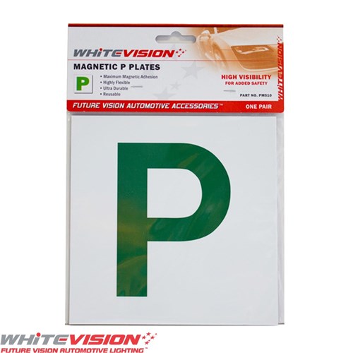 The WhiteVision Magnetic Green on White P Plate provides a clear and durable solution for probationary drivers. With bold green lettering on a bright white background, this plate ensures maximum visibility and lets others on the road easily recognize your status. Featuring a strong magnetic backing, it allows for easy attachment and removal without causing any damage to your vehicle. Designed for long-lasting use, the WhiteVision Magnetic Green on White P Plate combines practicality with safety, giving you confidence on every drive.