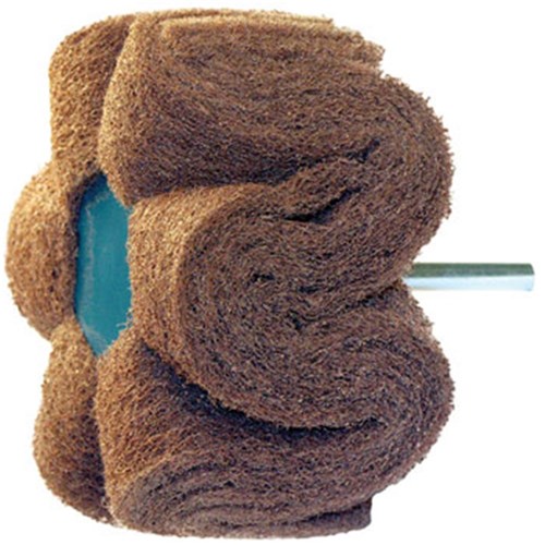 This 100mmx50mm mounted PoliNox wheel uses 'scotchbrite like' material with 100 grit abrasive grains to leave a matt or satin finish with minimal signs of transitions. To be used on stainless steel