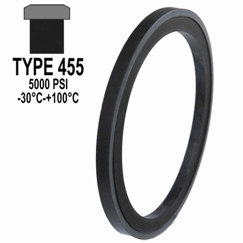 The Hallite 54 double acting piston seal provides the designer with a compact, low friction seal for light to medium duty hydraulic cylinders. It comprises a PTFE ring, strengthened with additives to resist creep, which is pre-loaded by an O ring to be effective for the operating pressure range recommended. As the pressure rises the O ring deforms and compresses the PTFE ring against the tube wall increasing the sealing force and the effectiveness of the seal. As only the PTFE ring is in contact with the sliding surface, friction is very low and stick-slip movement is eliminated. The housing width allows the designer to use a narrow width piston, but it is recommended an adequate bearing is mounted on either side of the seal as shown*