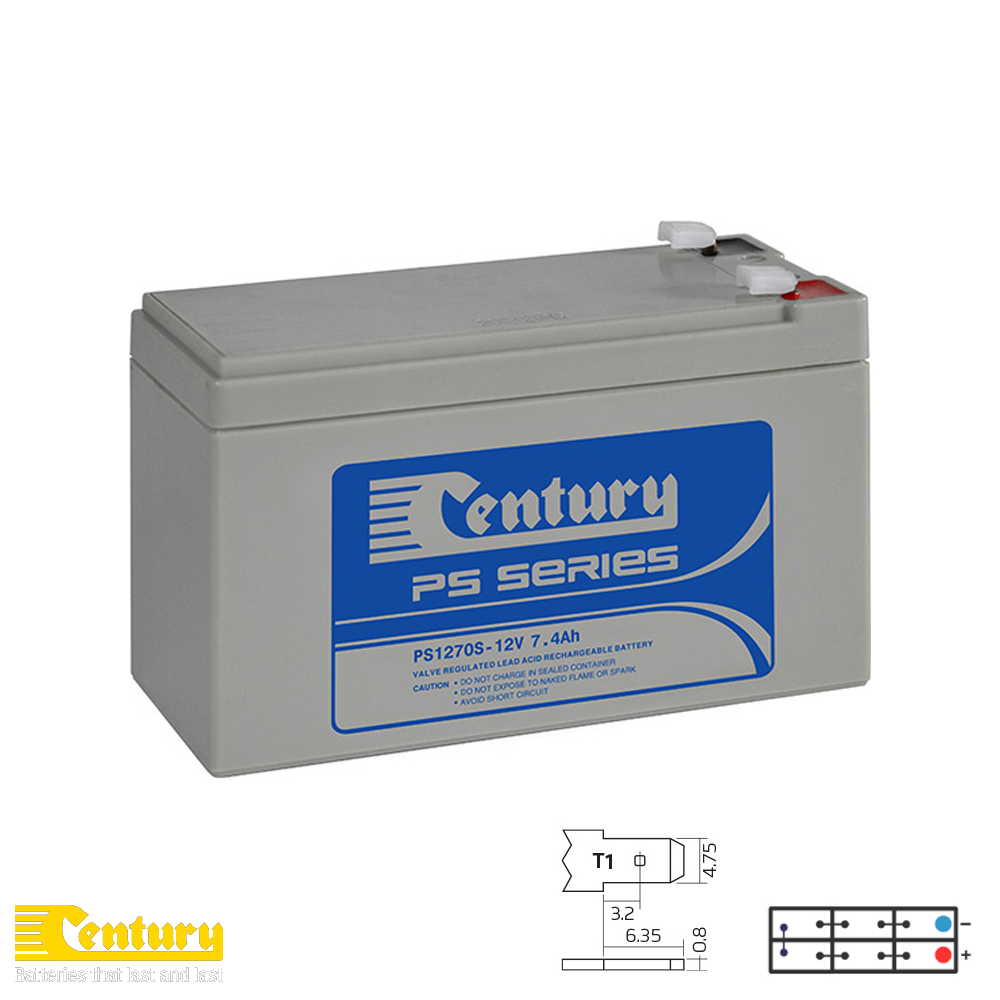 Century AGM Deep Cycle VRLA Battery – 12V 7.4Ah (T1 Terminal)