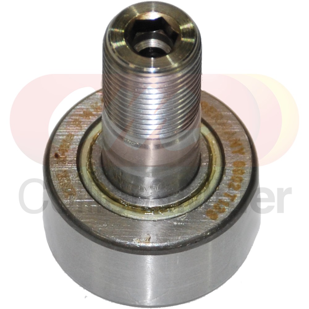 Made in Germany by INA this Cam roller bearing measures 40mm OD x 58mm L x M18 x 1.5 thread and is used on Krone balers. The roller is fitted with rubber seals and 2 rows of full compliment needle rollers, allowing for a thicker outer ring to handle heavyer loads, shock, and also to run cooler.