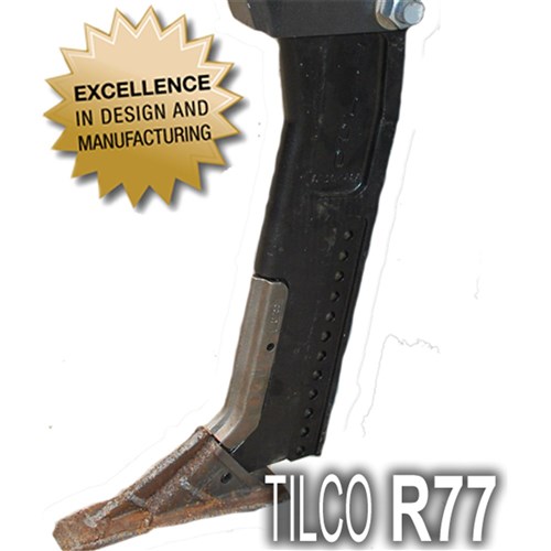 TILCO Rigid Shank. Part of theTILCO Primary Tillage System this assembly comes complete with clamp to suit 178x178mm toolbar, shin guard and Hardfaced point. Fixed frame clearance of 788mm 32mm shank material. 5 Tonne breakout with shear pin protection. Accepts a full range of accessory items.