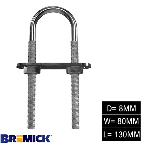 Bremick Double U Bolt 8 x 80 x 130mm Galvanised