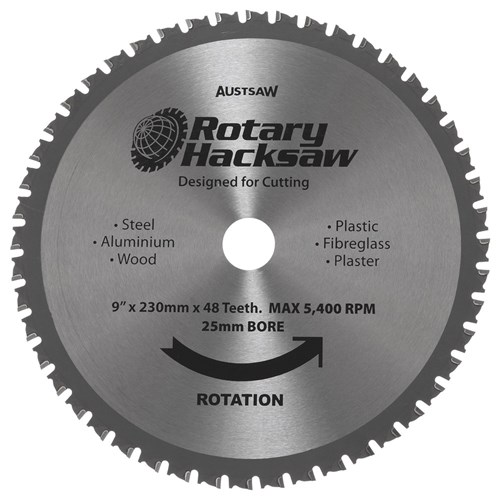 Austsaw Rotary Hacksaw is designed to cut a wide variety of products with minimal burning, sparking and dust. Suitable for cutting fibreglass, aluminium, Colorbond sheet, steel sheet, plastic, wood and weatherboard.