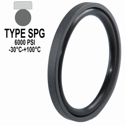 Double acting glide style piston seal. Suited for one piece pistons features PTFE seal face with a Nitrile energiser. Excellent in high speed application but not designed for static load holding. Working pressure 6000 psi (400 bar) +30 Degree C to +100 Degree C. Cylinder speeds up to 5m/sec.