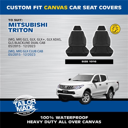 TRADIES Custom Fit Canvas Car Seat Covers are built tough to handle the demands of hard work. Made from 100% waterproof heavy-duty poly canvas, they offer rip and tear resistance, creating a solid barrier against spills, mud, grease, and grime. These covers provide complete all-over protection for your seats, without using any weak stretch fabrics. Tailor-made to fit your vehicle perfectly, they feature split folds and seatbelt holes to ensure full seat functionality and airbag compatibility on both sides. With a 5-year guarantee against faulty materials and workmanship, they’re designed to last. The headrest covers and rear map pocket offer added protection and convenience, while the hook and loop tape fitting system makes installation and removal quick and easy. Tradie-tough and made to measure for complete confidence.