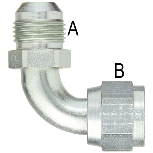 Hydraulic JIC 37 Degree Male/Female 90 Degree tube elbow. High pressure zinc plated steel adaptor.