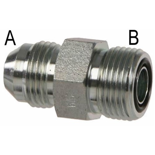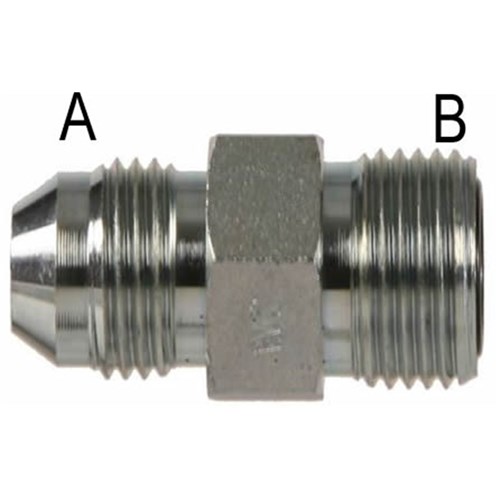 Hydraulic JIC Male/ORFS Male Straight Nipple (Union). High pressure zinc plated steel adaptor complete with O-Ring.