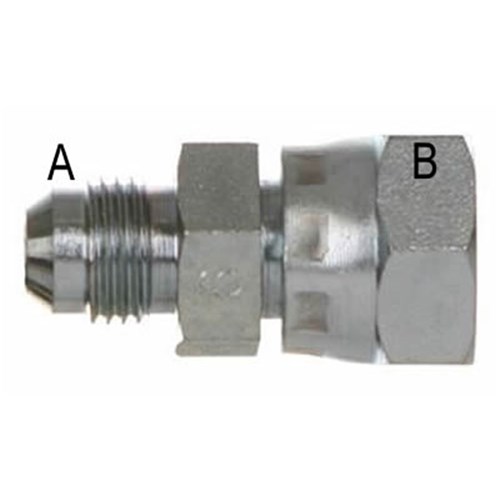 Hydraulic JIC Male/ORFS Swivel Female straight adaptor. High pressure zinc plated steel adaptor.
