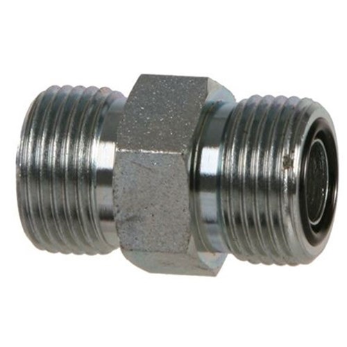 Hydraulic ORFS Male Straight Nipple (Union). High pressure zinc plated steel adaptor.