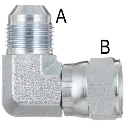 Hydraulic JIC 37 Degree Male/swivel Female 90 Degree elbow. High pressure zinc plated steel adaptor.