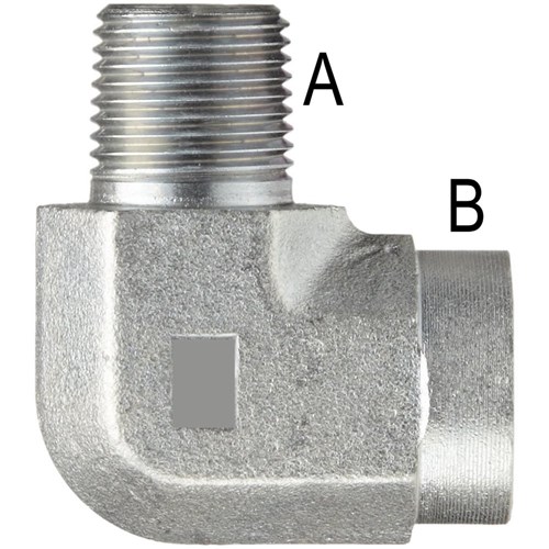 Hydraulic BSPT Male/fixed Female 90 Degree elbow. High pressure zinc plated steel adaptor.