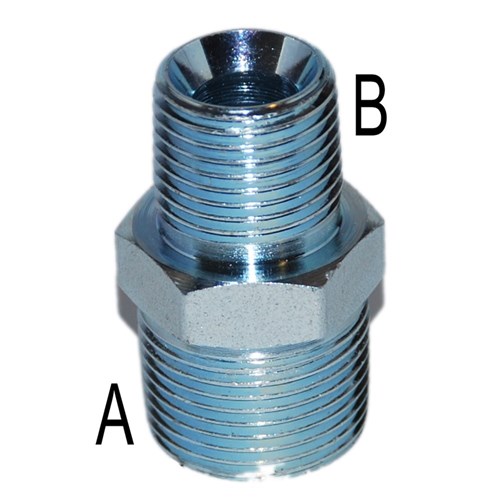 Hydraulic BSPT Male Straight Nipple (Union). High pressure zinc plated steel adaptor.