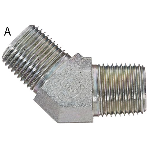 Hydraulic BSPT Male/Male 45 Degree elbow. High pressure plate steel.