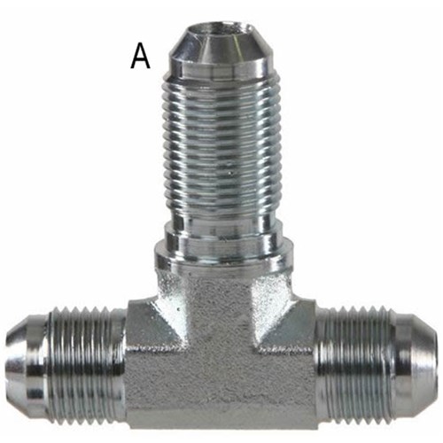 Hydraulic JIC 37 Degree Male bulkhead tee. High pressure zinc plated steel adaptor. Comes with bulkhead locknut.
