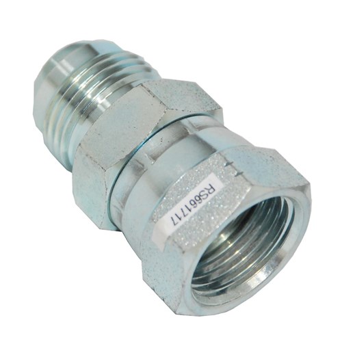 Hydraulic JIC 37 Degree Male/JIC 37 Degree Swivel Female straight adaptor. High pressure zinc plated steel fitting.
