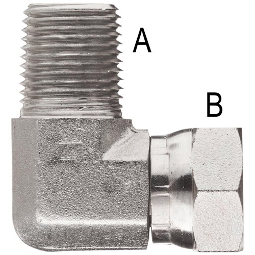 Hydraulic BSPT/BSPP Male/swivel Female 90 Degree elbow. High pressure zinc plated fitting.