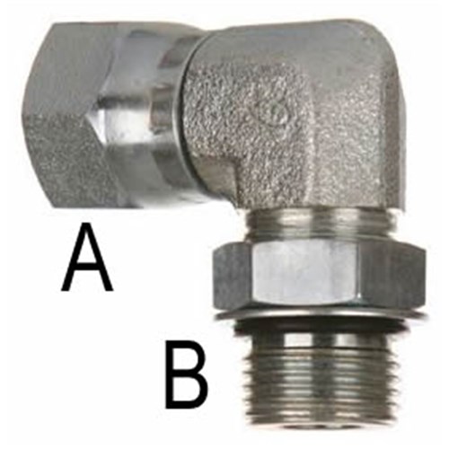 Hydraulic JIC 37 Degree/UNO Male/swivel Female 90 Degree elbow. High pressure zinc plated fitting.