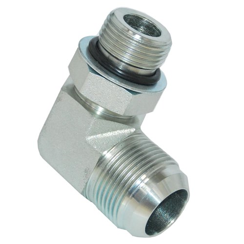 Hydraulic JIC Male/UNO Male 90 Degree elbow. High pressure zinc plated steel adaptor. Complete with O-Ring.