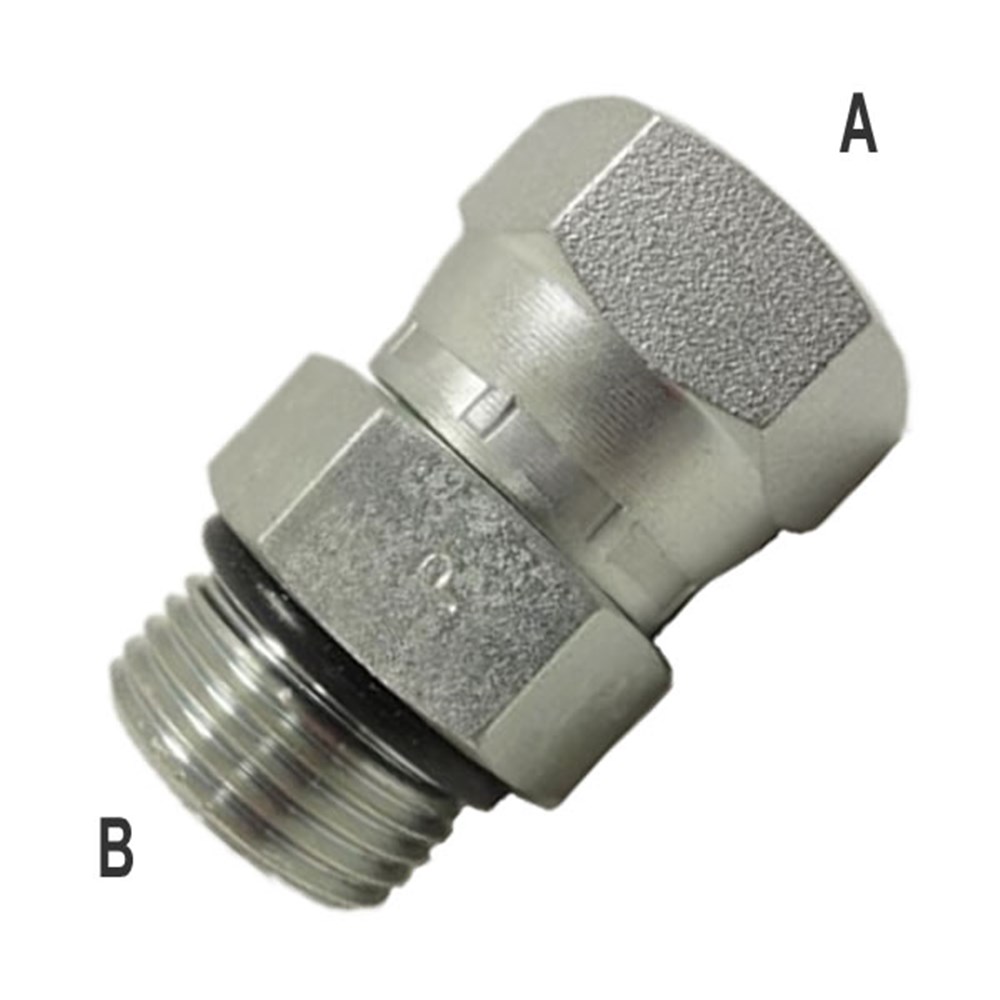 Hydraulic BSPP Female/UNO male Swivel straight adaptor. High pressure zinc plated steel fitting.