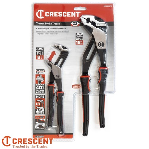 Crescent Z2 K9™ 8" & 10" Straight Jaw Dual Material Tongue and Groove Plier Set