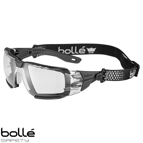 BOLLE RUSH+ 2.0 XP Safety Glasses – Clear Lens, Grey/Black Rimless Frame