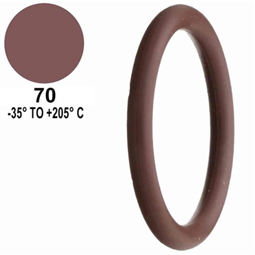 Viton 70 Durometer O-ring. Superior resistance to a broad range of chemicals and ability to resist higher temperatures than Buna N. Temperature range -35 Degree C to +205 Degree C.