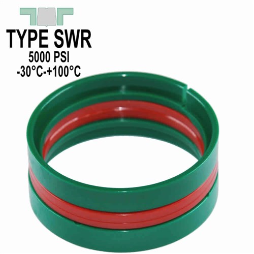 One piece double acting piston seal with acetyl L shaped wear ring. Suitable for one piece pistons. Heavy duty polyurethane seal for superior wear resistance compared to rubber. Light to medium duty Applications. Working pressure up to 5000 psi (335 bar) -30 Degree C to +100 Degree C piston speeds up to 0.5m/sec.