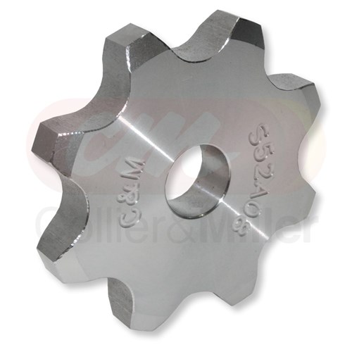 This plate wheel is fully machined from 18mm grade 1045 steel, supplied with a 1.00" pilot bore. We stock a range of plate wheels to suit S52 chain and machine these in our own workshop.