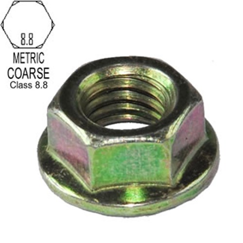 A nut with an inbuilt flange that acts as a washer and helps to lock nut in place