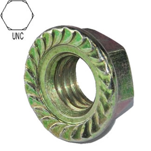 A nut with an inbuilt flange that acts as a washer and helps to lock nut in place
