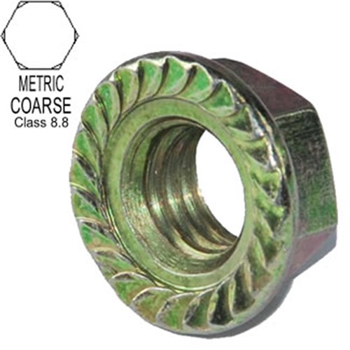 A nut with an inbuilt flange that acts as a washer and helps to lock nut in place