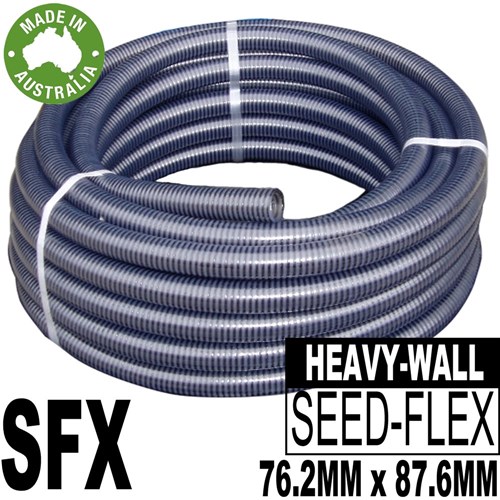 SFX Series Premium Grade PVC Seedflex Airseeder Hose with a black helix and clear tube is a super tough product with excellent flexibility and durability.