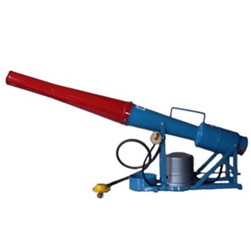 Scare Gun Double Shot. All cannons are equipped with a weather shield for protection against sun, wind and rain. These Gas Scare-Away Cannons have a decibel rating of 92 decibels and a coverage area in excess of 5 hectares. An all steel construction and operates on LP Gas. Double Shot scare cannons are programmed with a set 40 second time delay between shots. The best clock in the world may sometimes gain or lose. This is why a precision regulator is provided for correct adjustment. The degree of accuracy is 5 minutes per week.