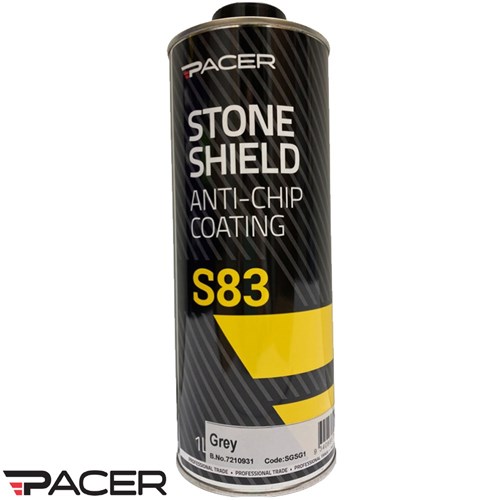 Pacer S83 Stone Shield is a flexible, heavy bodied, textured underbody coating for protection against salt, moisture, rust and general road abrasion. It will provide a durable, flexible, high opacity stippled coating to resist against stone chip damage to the lower body sections of vehicles.